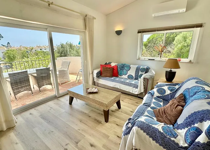 La villa de 120 m^2 Villa Vila Vista Luz se trouve à moins de 10 minutes en partant de Golf d'Espiche et dispose du parc aquatique, le terrasse et ces chaises longues. Un patio, un balcon et un espace de repas sont à l'honneur dans les chambres de la villa.